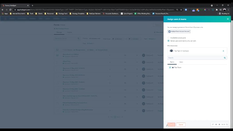Lastly, if you're also on Enterprise, you can then manage the access and partition this by particular teams so that only specific teams can see certain forms, such as the Test Team in this instance.